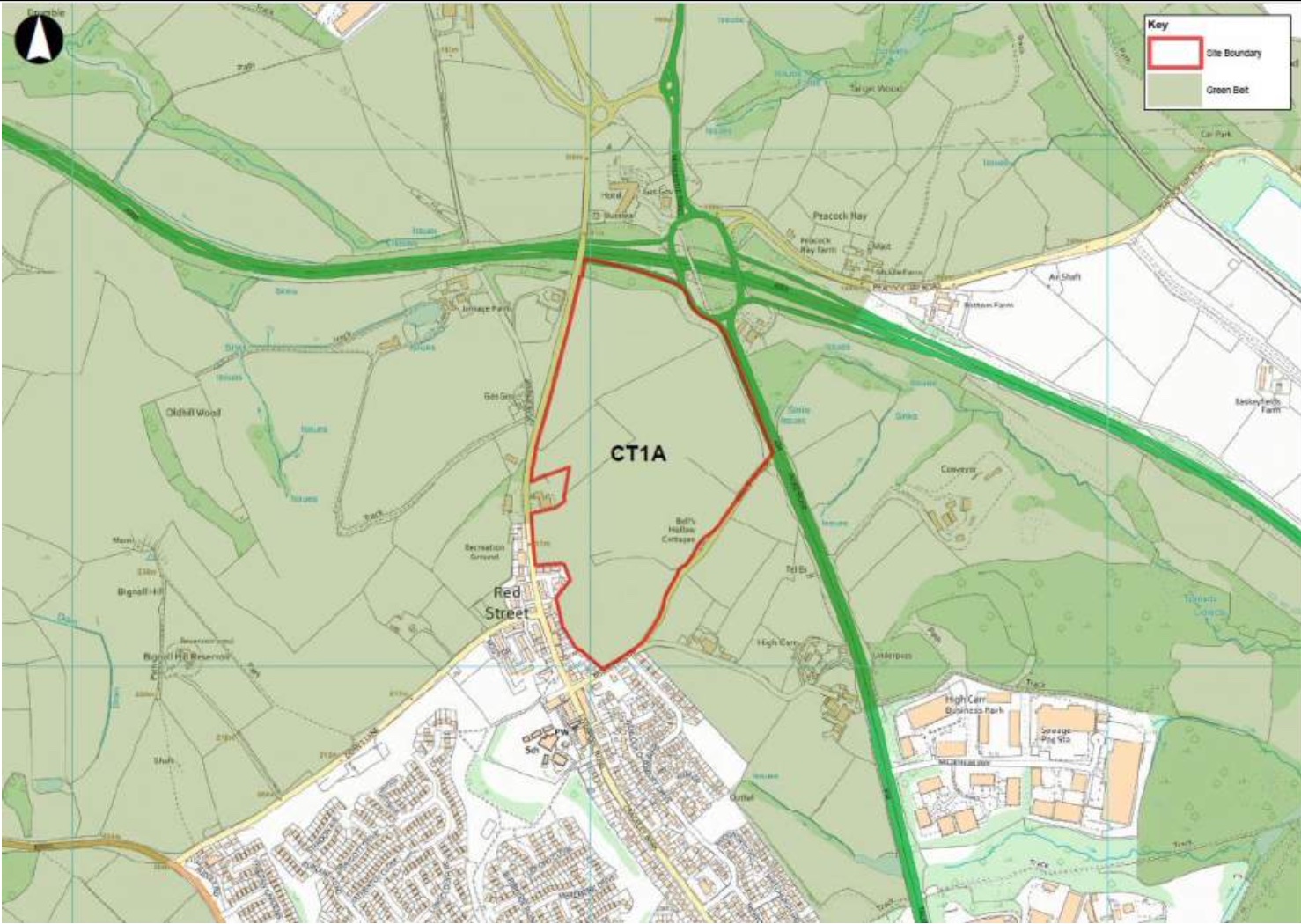 Newcastle Under Lyme Borough Council have published a proposal to develop land in and around Red Street. The proposal sets out a plan for 788 homes on fields either side of Bells Hollow (Area Marked CT1). Please see the map below.